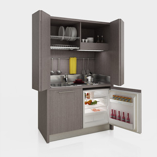 - la compattezza delle dimensioni: spesso in soli 120/150 cm troviamo tutto ciò che può servire compreso il microonde